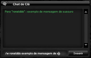 Dica: ao enviar um sussurro a um player, aperte a tecla enter, e aperte a seta para cima do seu teclado, o nome dos ultimos usuários que você mandou o sussurro aparecera no chat automaticamente, não necessitando escrever tudo novamente.
