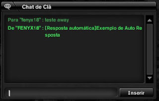 /away [mensagem] :Mensagem automática aparecera ao player que lhe enviar um sussurro.